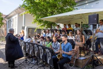 Bereits zweimal hat die Bigband „Ja(t)zzt aber los!“ des Gerhart – Hauptmann-Gymnasiums Berlin-Friedrichshagen hier in Petershagen gespielt.